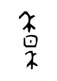 是“隹”字,指的是鸟。日暮时分,太阳没入林间,远处天边血红,近处天光渐暗,众鸟在鸣叫声中徐徐归林,不一会儿便隐没在林间,不见踪迹。这个
