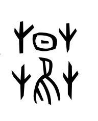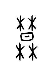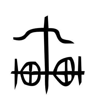 这是“行”字最初的样子,非常形象,就是一个十字路口。甲骨文里把道路称作“行”。