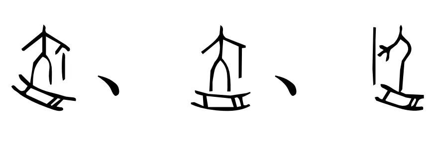 (舟)的字形推断,商代的小舟是用多块木板组合而成,中间平直,头尾微翘。如果想要速度快一点,可以像“荡(盪)”字甲骨文
